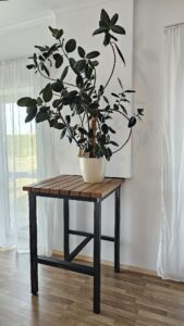 Izmantojam augstas kvalitātes melno metālu vai nerūsējošo tēraudu, savienojot to ar masīvkoka elementiem – ozolu, ošu vai citiem materiāliem pēc izvēles. Tas nodrošina mēbelēm stabilitāti, eleganci un ilgmūžību.
